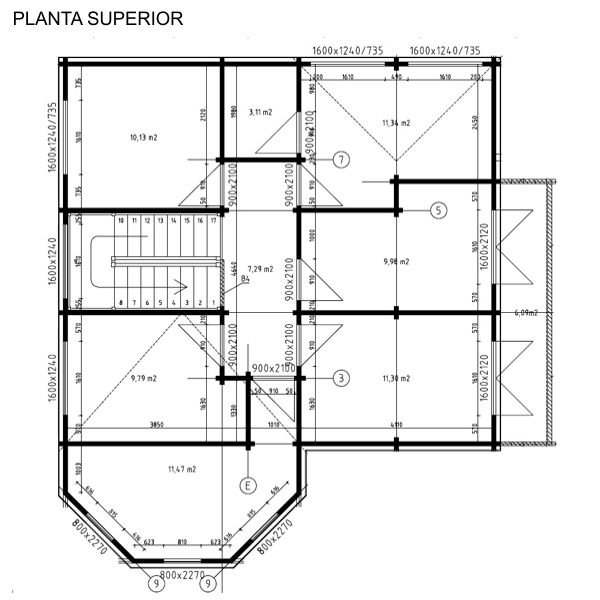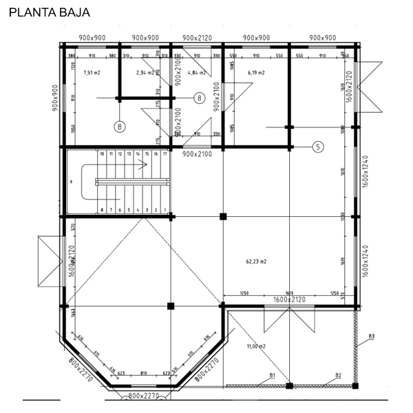 Pared exterior 200 mm. / Interiores 90 mm.